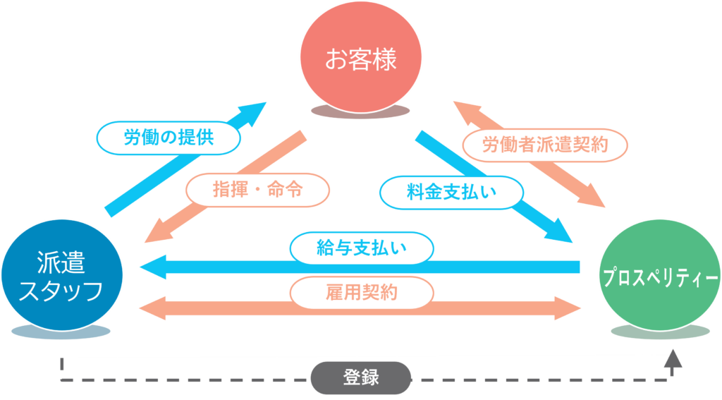派遣先と派遣スタッフの間に派遣会社の担当者がおりますので、